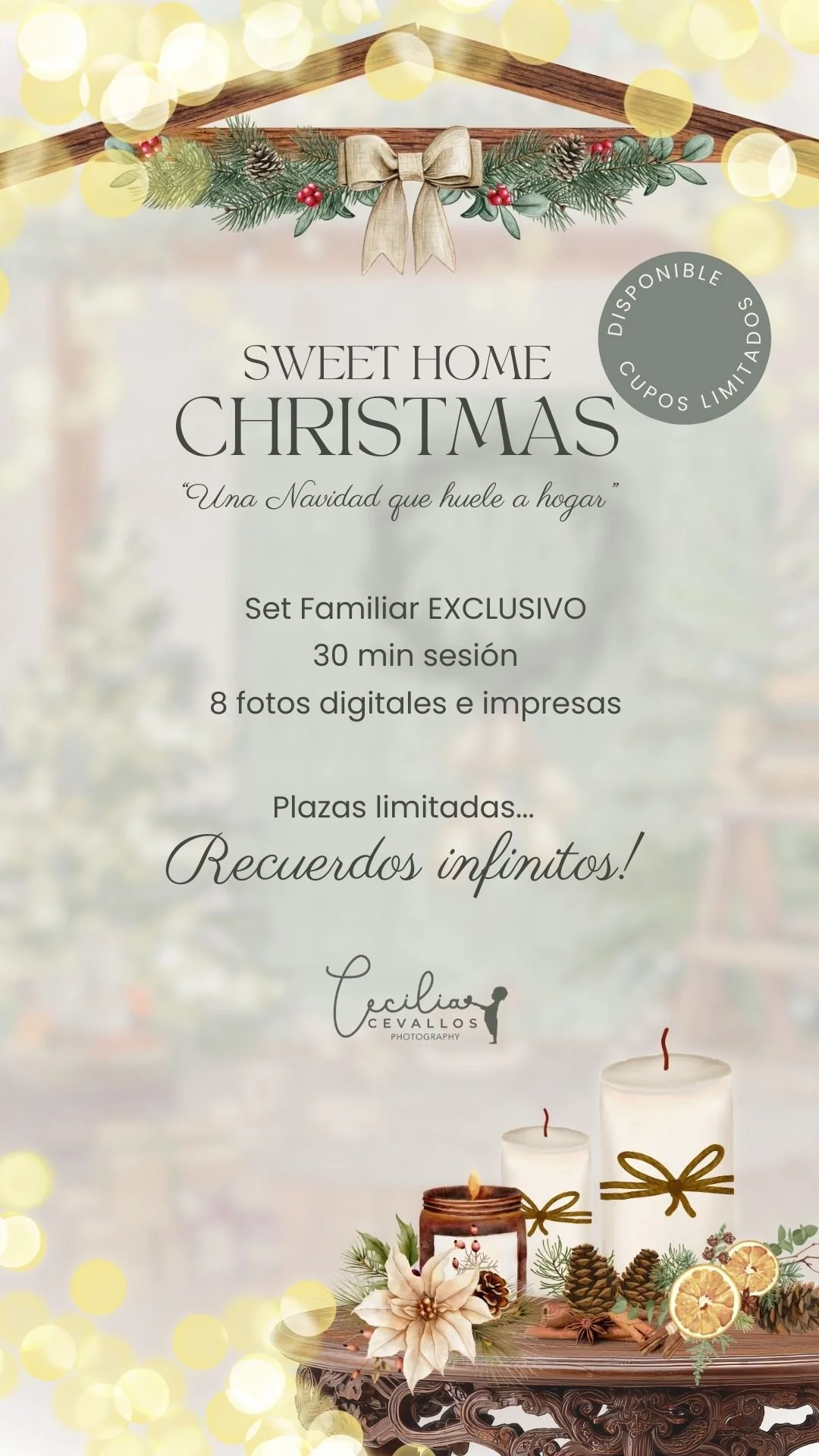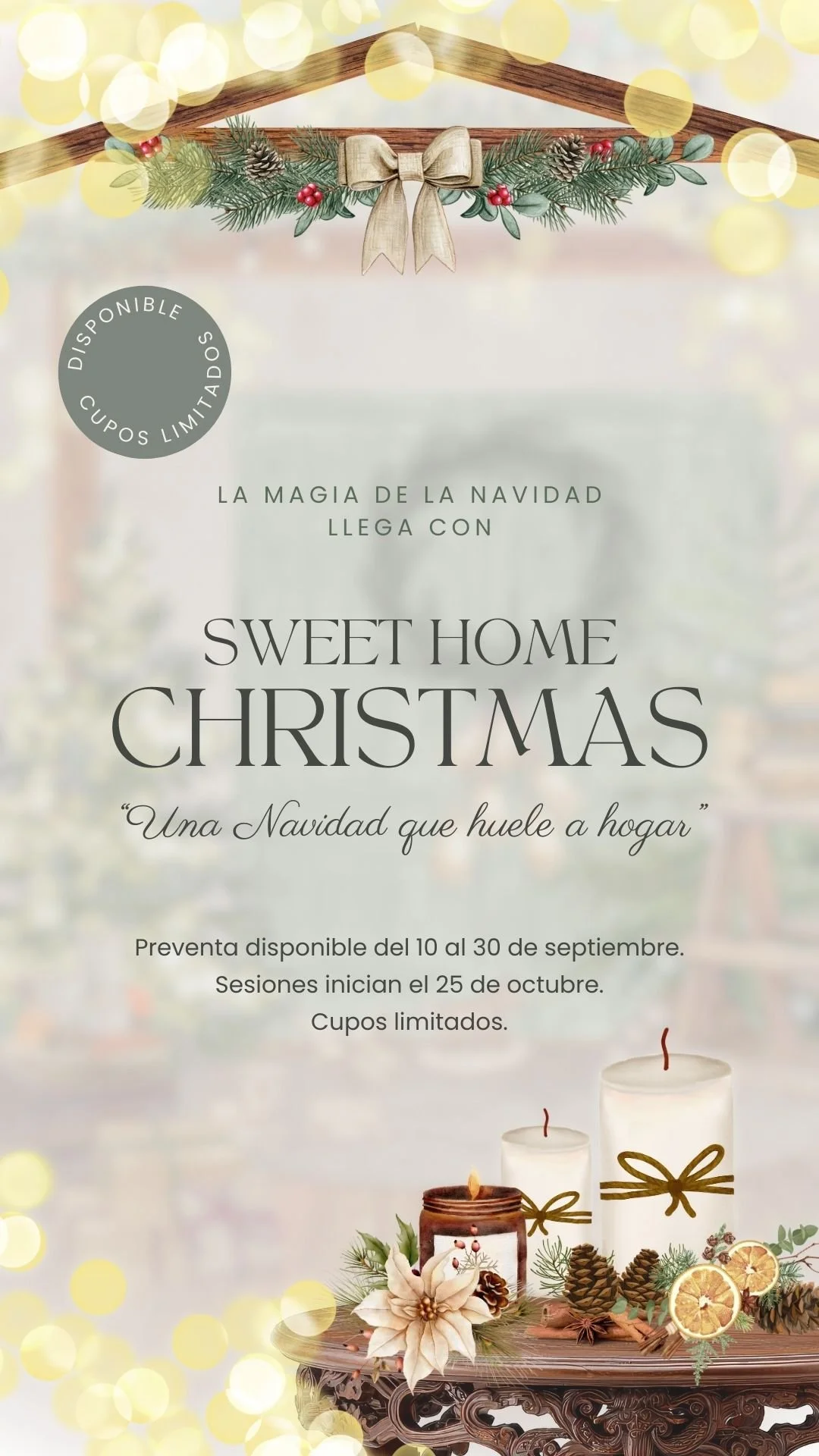 Un set fotográfico inspirado en un invernadero rústico , decorado con luces cálidas, pinos, y accesorios en madera, creando un ambiente envolvente lleno de magia, con aromas de canela, vainilla y chocolate.